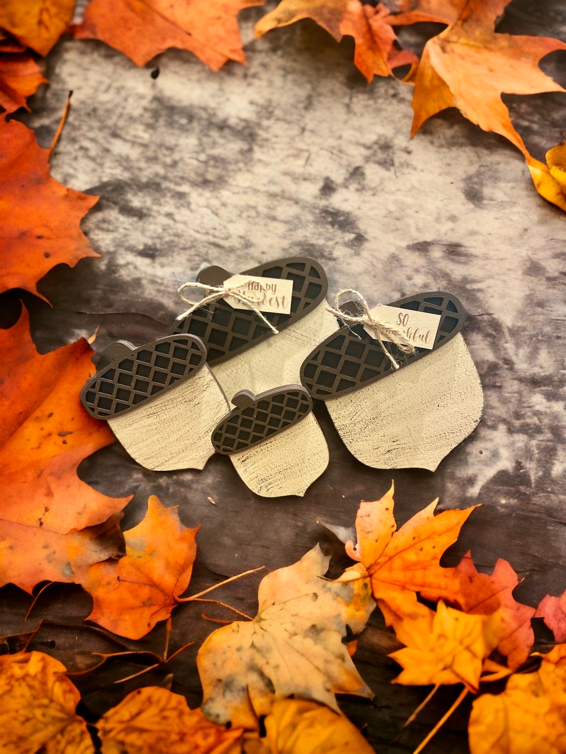 The Acorn is a chunky wood stand that can stand on its own and is available in four sizes.