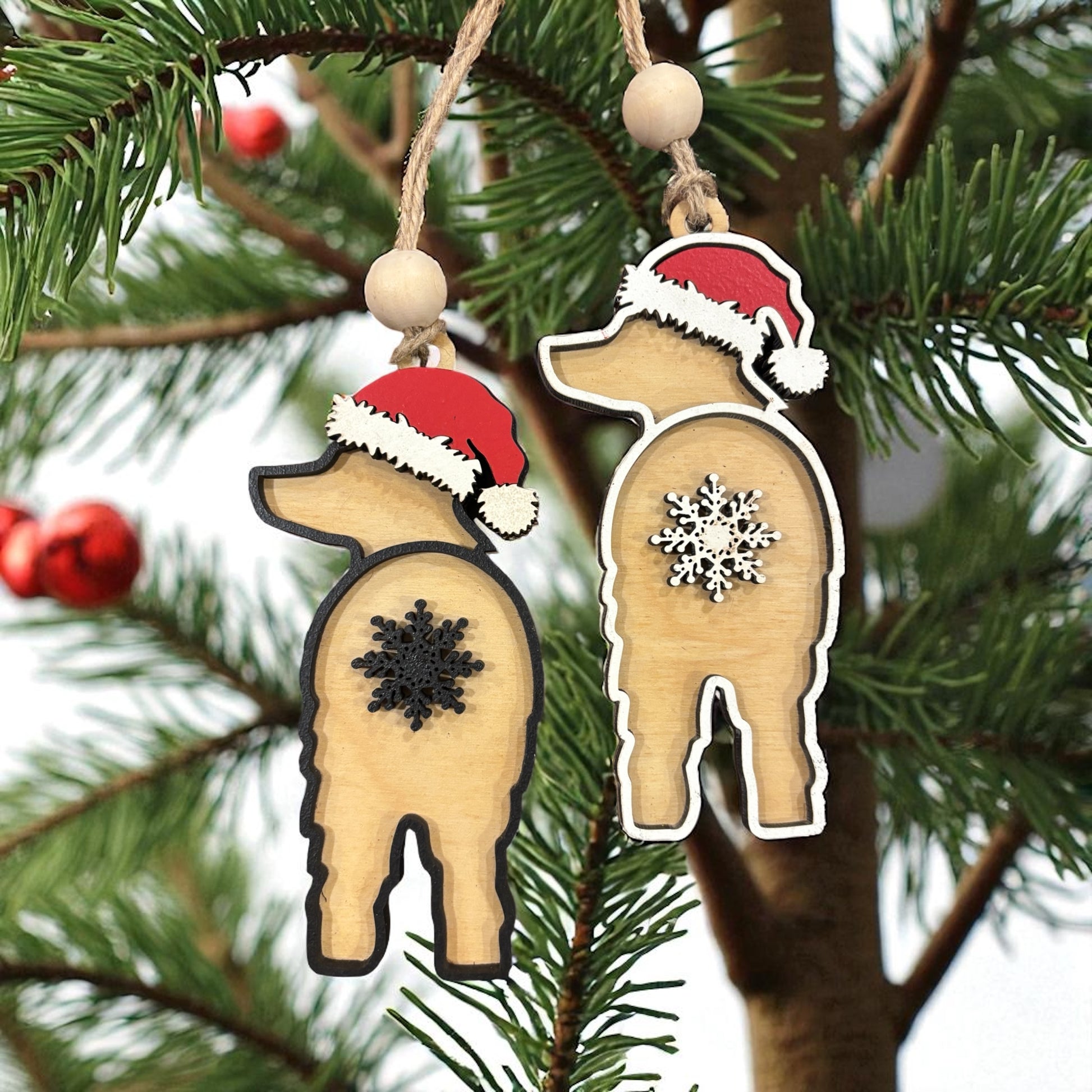 Add a touch of humor to your holiday decor with these wooden Dog Butt Ornaments. Available in several fun varieties, each ornament showcases a quirky, hand-crafted design that’s sure to bring smiles.