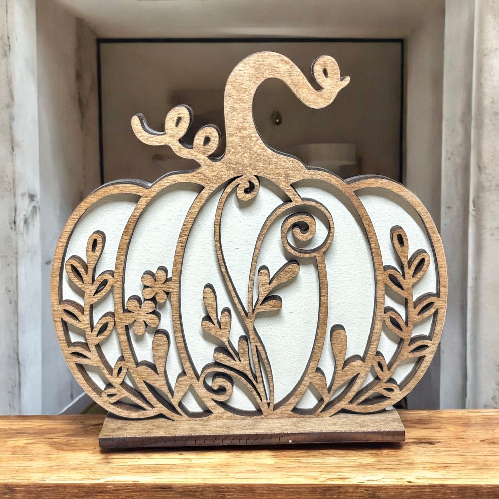 Add a warm touch to your space with the Floral #2 Individual Pumpkin wood decor. Its charming floral design brings a cozy, natural feel perfect for seasonal decoration.