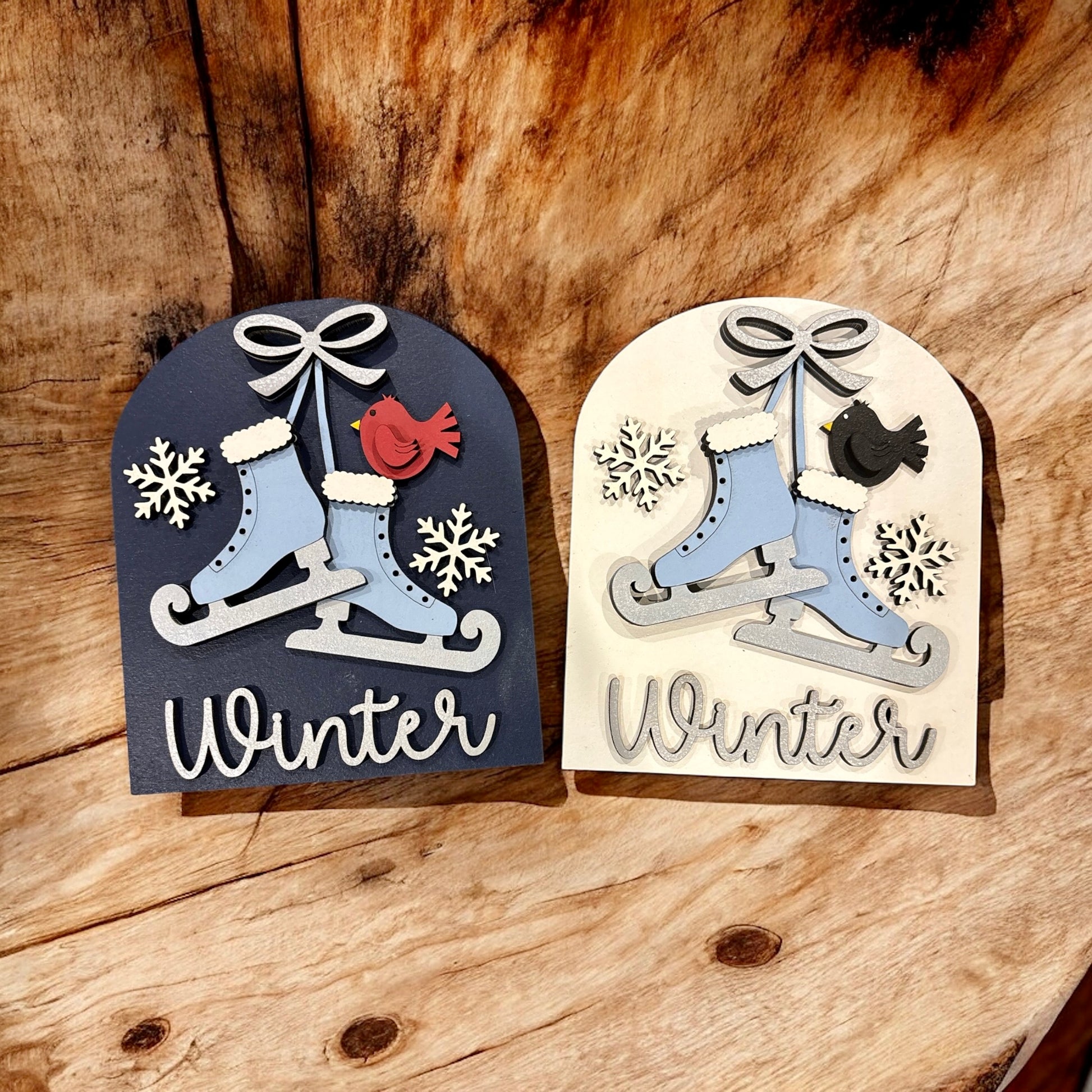 Add a charming touch to your winter decor with this small wooden Winter Ice Skate Arch Insert. Its simple design fits perfectly in seasonal displays, bringing a cozy, festive feel to any space.